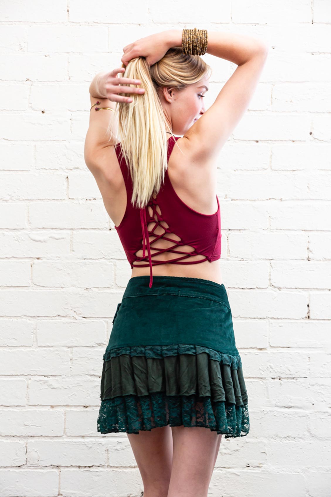 - Layered skirts: These skirts feature multiple tiers of fabric in varying lengths, creating a whimsical and flowing silhouette that moves gracefully with every step. Often adorned with intricate embroidery, tie-dye patterns, or patchwork designs, layered skirts capture the eclectic and earthy essence of hippie style. They offer versatility in both casual and festival settings, pairing effortlessly with peasant blouses, crop tops, or vintage band tees. Whether adorned with vibrant colors or muted earth tones, layered skirts evoke a sense of wanderlust and adventure, making them a beloved staple in the wardrobes of hippie fashion enthusiasts.