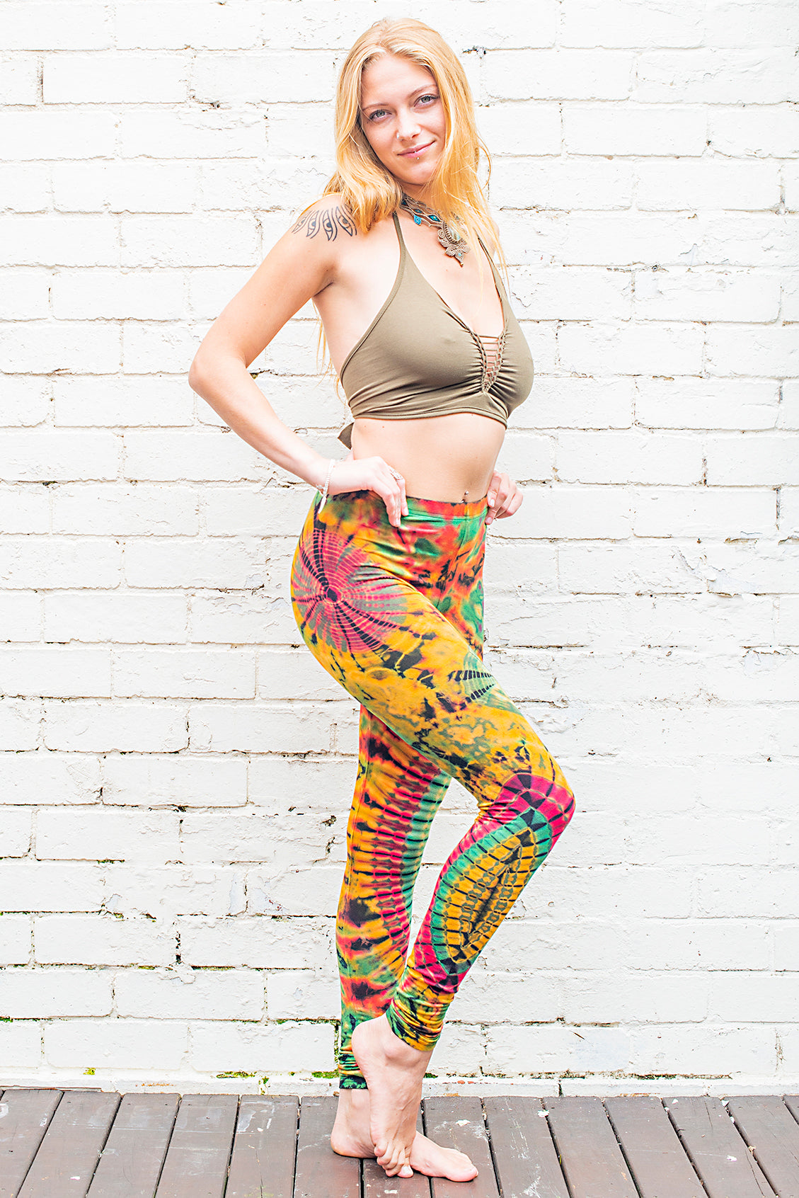 - Tie-dyed leggings: They are an essential element of hippie fashion, embodying the vibrant and free-spirited aesthetic of the counterculture movement. With their kaleidoscopic patterns and bold colors, tie-dyed leggings add a playful and bohemian touch to any outfit. They offer both comfort and style, allowing individuals to express their unique personality and embrace their inner hippie.